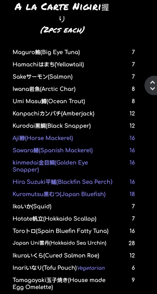 Ala Carte Nigiri 握り(pc each) Ala Carte Nigiri 握り(pc each)